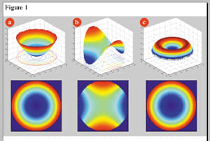 Aberrometry data contain terms that may be unfamiliar to contact lens practitioners. Instead of the power maps we see in corneal topography, aberrometers typically quantify aberrations by wavefront error (WFE) maps. Figure 1 shows three such maps using two graphic styles. The top row shows a three-dimensional mesh or surface plot of the wavefronts, while the bottom row displays the more familiar two-dimensional color maps. These color maps show the "elevation" of the wavefront, coded by color. In an aberration-free (perfect) optical system, the wavefront map would be flat and only one color. Larger color changes indicate more aberrations and thus inferior optical quality. In general, warmer colors such as reds, oranges and yellows represent areas of a wavefront that are higher ("advanced") in relation to the reference surface, and cooler colors represent areas of the wavefront that are lower ("retarded") in relation to the reference surface.