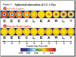 Figure 3. Only the Biomedics Premier aspheric lens effectively controls spherical aberration. |