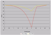 In theory, less apical clearance would result for the steep meridian, providing a greater refractive change, and greater apical clearance would result for the flat meridian, providing a smaller refractive change. Figure 1 shows the difference in force between the steep and flat meridians. Note that the steep meridian (red line) has much greater squeeze force than does the flat meridian (yellow line).