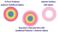 Consider a CSA enhancement to either design for patients who don't obtain adequate near vision from just the posterior aspheric curvature. This typically occurs because of small pupils or poor lens translation. By placing add power on the front surface of the lens, you can alleviate some of the limitations in the aspheric lens design. Some patients cognitively prefer an annular design modality. A Series I Essential or Essential Xtra CSA lens design will solve these problematic lens adaptation issues.