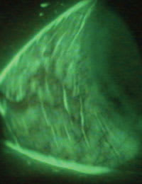 When moving in closer to observe the ocular structures, it's best to begin with dry eye in mind. Observe the blinking pattern and regularity, the cleanliness and orderliness of the lashes, the regularity and smoothness of the lid margins and their apposition to the globe. Be familiar with the normal appearance of the lacrimal lake and what constitutes a reduced volume. When observation reveals dry eye syndrome, blepharitis and/or meibomian gland dysfunction, lens-wearing patients often respond quite well to traditional treatment modalities (lubricants, cyclosporine, lid scrubs and/or punctual plugs).