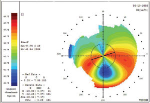 The practitioner may find irregular keratometry mires which make it difficult to differentiate corneal warpage from early keratoconus. However, you can better evaluate the problem from a topographic map.