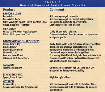 The year 2005 started with what was possibly the biggest corporate business news, the merger of CooperVision and Ocular Sciences the fourth-largest contact lens company merging with the fifth-largest, and consequently leaping to become the third-largest contact lens business in the world. Our business, however, is about fitting contact lenses to patients. What's often more interesting to practitioners is what new products were introduced and what changes in parameters occurred in existing products We're all busy people, so sometimes new products or parameter changes that we're waiting for go unnoticed. Here's a summary of what you might have missed in 2005.