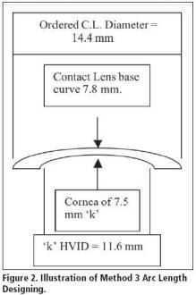 Every eye has an arc length that you can determine by knowing the radius of curvature and the HVID. You can determine the arc of a contact lens using the same formula. You need an accurate HVID. Determining the arc length with the formula is time consuming, so SpecialEyes has put it on an Excel Spreadsheet on its Web site to simplify the technique. First, adjust for vertex distance, then use the spreadsheet to determine the lens design.