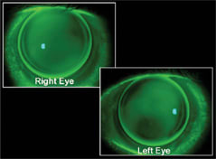 At that time we informed DL that if the irregular astigmatism was secondary to an ectatic condition (keratoconus or PMD), then time and progression of the condition would most likely provide clarity to the diagnosis. We've now followed the patient for 10 years and his corneal topographies are identical to those we captured more than a decade ago (Figure 1). In fact, he continues to wear the exact base curve lenses we originally fit in 1996 (Figure 2).