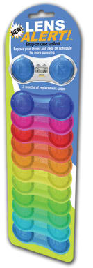 The original LensAlert product is designed to hold patients' existing lens cases if they prefer to use their own. It's designed to fit most lens cases. The second product includes 12 cases (a year's supply) in either one or multiple colors and a snap-on timer. Call (314) 721-5367 or visit www.lensalert.com.