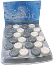 Amcon offers I-clean cases in a counter display of 12 cases for retailing. The cases are also available in bags of 50 for refilling the display or for samples to contact lens patients. Call (800) 255-6161 or visit www.amconlabs.com.