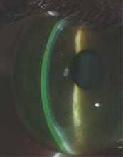 Timothy Edrington, OD, MS, FAAO, explained that researchers in the CLEK study fit five lenses to each cornea: three lenses flatter than the flattest keratometry values and two lenses steeper than the flat-test keratometry values. They were looking for what they called the first definite apical clearance lens (FDACL), or the first lens that showed minimal clearance and lacked touch on the apex. Fitting such a lens can theoretically reduce scar formation and also might reduce mechanical stress on the cornea.
