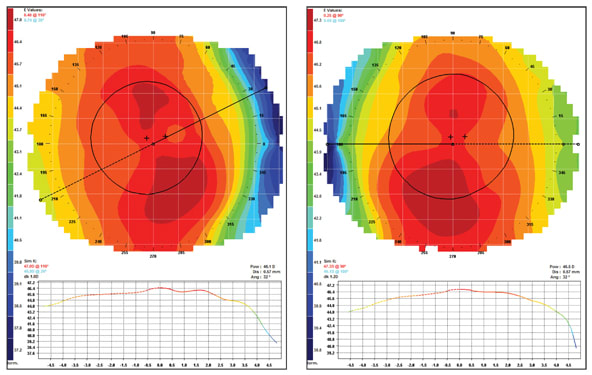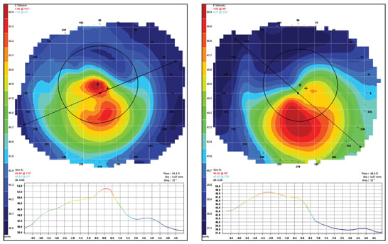 Figure 5. Patient #2 baseline topography maps for OD (left) and OS (right).