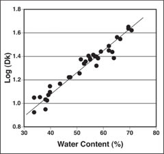 Figure 1. For hydrogel materials, Dk is directly related to water content.