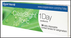 ClearSight 1-Day is manufactured in ocufilcon D (55 percent water). Parameters include sphere powers of plano to –6.00D in 0.25D steps, –6.50D and –7.00D; 8.7mm base curve; 14.5mm diameter; and cylinder powers of –0.75D and –1.25 in axes of 180 degrees, 160 degrees, 90 degrees and 20 degrees.