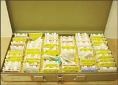 We are currently evaluating a new GP delivery system from Paragon Vision Sciences called SureFit. With SureFit, the practitioner provides the laboratory consultant with a patient's Ks and prescription, and together they determine the most appropriate contact lens design for the patient. The consultant then selects two to four different base curve and power combinations for each eye. The lenses are shipped in sealed, wet-storage blister packs labeled by letters starting with A. (Figure 2).