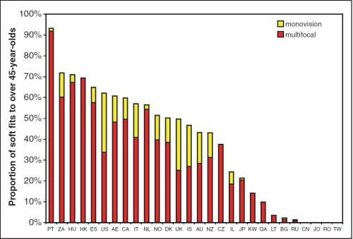 This survey was funded by the sponsors of Eurolens Research at the University of Manchester: Bausch & Lomb Incorporated, Alcon Laboratories (UK) Limited, Abbott Medical Optics (UK) Limited, Ciba Vision (UK) Limited, CooperVision Limited, Johnson & Johnson Vision Care, Menicon Co. Ltd., and Sauflon Pharmaceuticals Limited. Additional funding and/or assistance was provided for the following: United Arab Emirates, Bulgaria, Hungary, Israel, Jordan, Kuwait, Romania, South Africa - Johnson & Johnson Vision Care; Australia - Optometrists Association Australia; Norway – the Norwegian Association of Optometry; Netherlands – Bausch & Lomb Benelux; Spain – Spanish College of Optic-Optometrists. We thank Valentina Capuano for help with the Italian data.