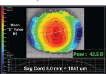 To further illustrate the effect of corneal eccentricity, we selected three corneas with identical apical radii of 42.50D (7.85mm) and measured their corneal sag over a cord of 8.0mm (Figures 2 and 3). Table 1 clearly shows that as the eccentricity increases, the sagittal depth decreases.