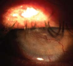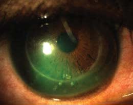 Induced corneal neovascularization (NV) can result from many inciting events, including alkaline and acidic chemical ocular injuries, hypoxia from contact-lens abuse, and infections such as herpes simplex, trauma, rheumatologic conditions, and chronic iritis. The first line of therapy is often GP lens correction for maximizing visual potential (Figure 3).