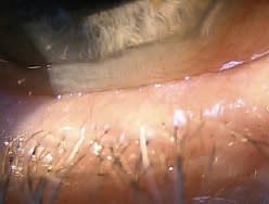 Please click this link Video 1. The conjunctival fold moves easily with the blink. Note that when the pressure of the lower eyelid against the globe is eliminated, the folds disappear.