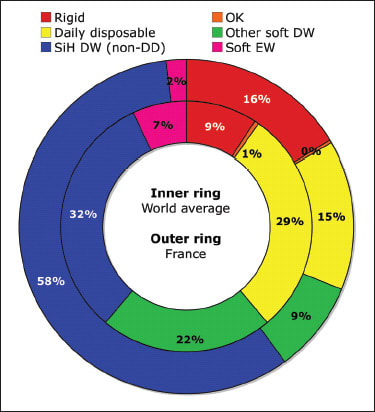 | A significant addition to our 2010 contact lens prescribing data is information about the French market, which is appearing this year for the first time in our survey. France is an unusual market for western Europe in that ophthalmologists have responsibility for contact lens prescribing; other contact lens markets in the region are typically serviced by optometrists and opticians. The French market has a number of distinguishing features. The proportion of rigid lenses is close to twice that of the global average whereas daily disposable soft lenses are less widely prescribed compared to other markets. Silicone hydrogels are widely used for daily wear use; extended wear is rarely prescribed. France has a reputation for high use of bifocal and multifocal contact lenses; products of this type are often launched early in France. This contention is supported by the 2010 survey, which demonstrates that more than 80 percent of presbyopes in France are prescribed a multifocal contact lens correction (rather than a distance-only correction).