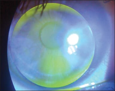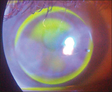 Figure 2. Using the TP modification, Patient #1's lens shows a more uniform peripheral fluorescein pattern.