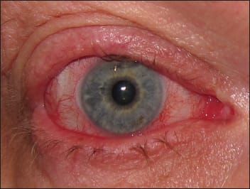 Figure 1 shows the right of eye of a 62 year-old male who has ocular graft versus host disease (GVHD) that developed after successful treatment of myelodisplastic syndrome. He suffers from severe keratoconjunctivitis sicca (figure 2).