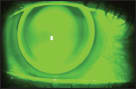 Figure 3 shows the final lens for the patient. We used the same base curve and diameter as the diagnostic lens, but ordered it with a “Grade 3 ACT,” or Asymmetrical Corneal Technology, Blanchard's name for a quadrant-specific peripheral curve system. In our case, we steepened the periphery at the bottom of the lens, “tucking” the edge in toward the cornea, to eliminate the edge stand-off. The patient noticed a resulting significant increase in lens comfort.