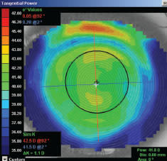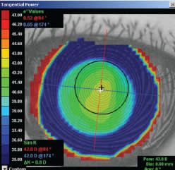 Figure 3. Topography of the right eye following two months of wearing the Duette lens on a daily wear schedule.