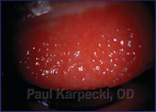 The presence of hyperemia is critical to the aggressive treatment of GPC. Many patients, for example, who are aggressively treated with corticosteroids and cessation of lens wear were able to successfully return to contact lens wear. However, examination of the upper tarsal plate six months to a year later often may show persistent papillae, but no hyperemia and the patients are not symptomatic.