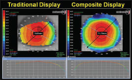 Figure 6. The traditional and composite display of a patient post-refractive corneal surgery.