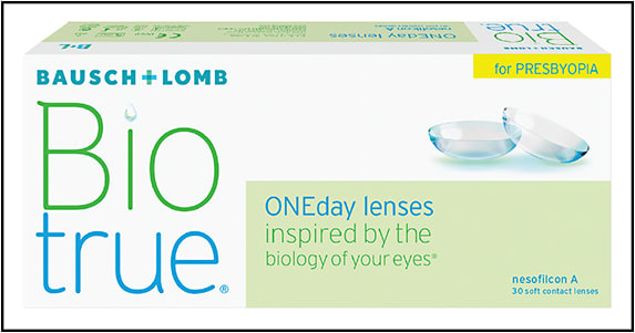 BIOTRUE ONEDAY FOR PRESBYOPIA COMBINES THE HYPERGEL MATERIAL OF BIOTRUE ONEDAY WITH THE PUREVISION2 MULTI-FOCAL DESIGN.