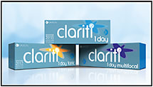 Parameters of Clariti 1Day include 8.6mm base curve, 14.1mm diameter, powers of –10.00D to +8.00D (0.25DS steps up to ±6.00D, 0.50DS steps beyond ±6.00D), center thickness (at –3.00DS) of 0.07mm, and Dk/t (at –3.00DS) of 86. Clariti 1 Day Toric has an 8.6mm base curve and 14.3mm diameter. Power ranges include plano to –6.00D (0.25DS steps), –6.50D to –9.00D (0.50DS steps) with cylinder options of –0.75D, –1.25D, and –1.75D in axes of 90º ±30º and 180º ±20º, –2.25D in axes of 90º and 180º ±20º; and +0.25D to +4.00D (0.25DS steps) with cylinder options of –0.75D, –1.25D, and –1.75D in axes of 20°, 70°, 90°, 110°, 160°, and 180°. Center thickness (at –3.00DS) is 0.105mm, and Dk/t at (–3.00DS) is 57. The Clariti 1Day Multifocal has the same base curve, diameter, center thickness, and Dk/t as the Clariti 1Day lens. Power range is +5.00D to –6.00D (0.25DS steps) with add powers of Low (up to +2.25D) and High (+2.25D to +3.00D). Call (800) 682-3240 or visit www.sauflonusa.com.