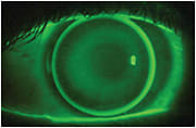 Figure 5. A bitoric GP lens on a 4.50DC cornea.