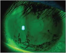 Figure 1. Tear film breakup as seen following traditional instillation of fluorescein.