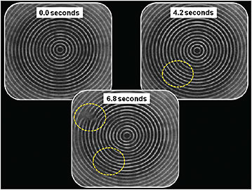 Today, TF-BUT can be measured with placido-based corneal topographers, which capture and assess a reflected ring image. This technique provides a non-invasive assessment of tear film smoothness and integrity. The instrument’s video function captures multiple photo-keratoscope images continuously during a 30-second interval and records the time until TF-BUT occurs (Figure 2).