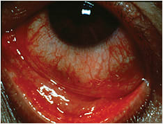 Figure 2. Classic injection and copious tearing from acute seasonal allergic conjunctivitis.
