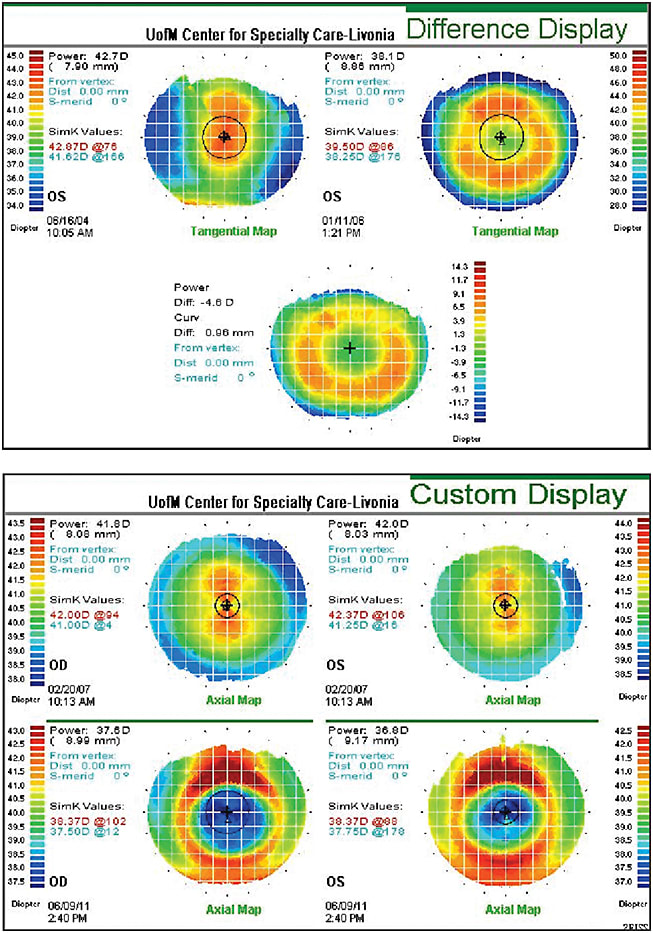 Additionally, studies have shown that the effects of OCR are temporary and completely reversible (Barr et al, 2004; Soni et al, 2004; Kobayashi et al, 2008). When patients discontinue OCR, their refraction and topography return to baseline. This factor has been viewed as both a limitation and an advantage of OCR. As a limitation, it requires patients to wear lenses on an ongoing basis for as long as they desire to use OCR. But the advantage is that if they ever choose to discontinue the process, they are able to return to their original refractive and topographic condition.