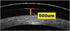 Corneal Thickness Another valuable OCT function that we utilize during a contact lens fit is global pachymetry. When fitting specialty contact lenses, we are especially concerned about corneas that are prone to edema, such as post-penetrating keratoplasty cases, especially when the endothelium cell count is low.