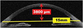 Figure 2. The sagittal depth from a chord of 15mm across the anterior segment to the apex of the cornea.