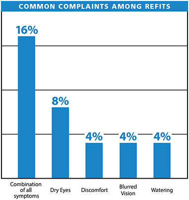 Figure 6. The distribution of symptoms among previous hydrogel lens users in refits.
