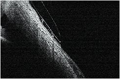A simple approach to measure the tear film depth beneath a contact lens (or central vault) is to compare the tear film thickness to that of the contact lens. When you instill sodium fluorescein (NaFl) into the bowl of the scleral lens prior to application and then observe the lens on the eye with an optic section viewed centrally, you will first see (going from anterior to posterior) the pre-lens tear film as a thin layer of green tear film fluorescence that is about 50 microns thick. Then, you will see a dark zone, which is the contact lens. Finally, you will observe another area that fluoresces with NaFl. This represents the post-lens/pre-corneal tear film. By comparing the thickness of this layer to the thickness of the contact lens, you can estimate the amount of vault in microns. Check with your contact lens fabricator for the exact thickness of the lens that you are evaluating (or you can verify its thickness in-office).