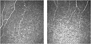 Figure 10. Confocal microscopy images of the cornea. The corneal nerves are visible in both scans. (Images provided by the CCLR, University of Waterloo.)