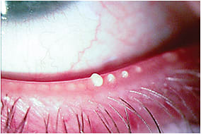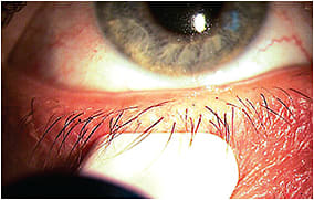 Figure 3. Poor-quality meibum is white, opaque, thick, and can be seen when the glands are expressed.