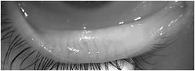 Figure 4. Under infrared illumination, meibomian glands appear as white thread-like structures. The loss of these structures represents gland atrophy.