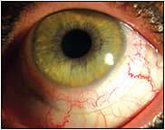 Figure 1. A scleral lens that is too firmly pushed on during application, resulting in vascular blanching.