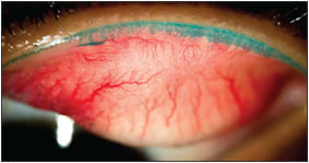 Lid wiper epitheliopathy (LWE) is a clinical condition observed as vital staining of the upper and lower lid margin regions that are in contact with the globe or a contact lens. It is believed to result from an increase in friction between the palpebral lid and the opposing bulbar conjunctiva, cornea, or contact lens (Korb et al, 2002; Korb et al, 2005).