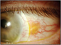 Because the edges of his lenses nasally and temporally rested on an unstable landing surface due to the elevations, he was prone to getting debris under the lenses. His chronic inflammation also caused watering and mucus external to the lenses that blurred his vision. This patient benefited greatly from notched lenses.