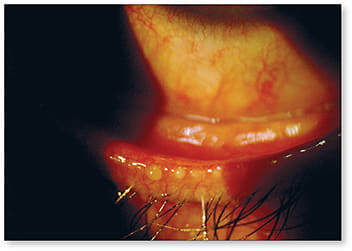 Figure 3. Granular expressions from meibomian gland orifices in an MGD patient. Courtesy of Christine Sindt, OD.