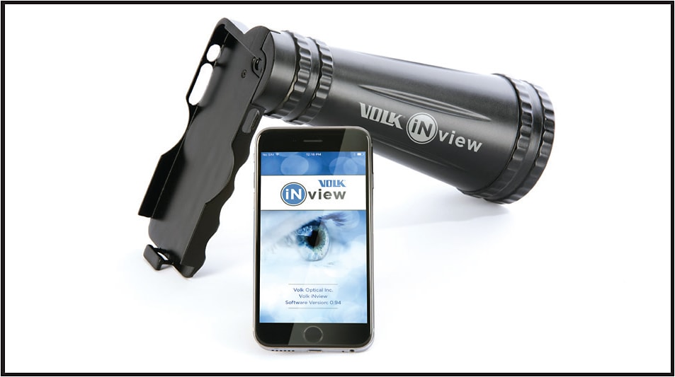 VOLK OPTICAL’S INVIEW CAN BE USED WITH A NUMBER OF APPLE DEVICES TO TAKE WIDE-ANGLE DIGITAL COLOR FUNDUS IMAGES.