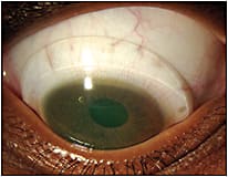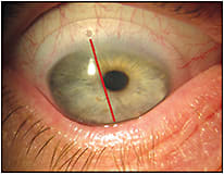Figure 3. Back-surface-toric lens on the eye measured in Figure 2. Toric orientation matches measured toricity.