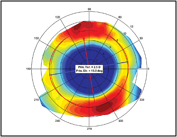 Figure 2. Scleral elevation map showing 2.50D of scleral toricity.