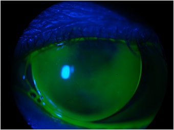 This lens design is more complex. While the patient liked it, it seemed that the lens had a more significant touch immediately above the center (i.e., superior paracentral cornea), which led the patient to experience increased lens awareness. Once again, no fluorescein staining was observed after more than six hours of consecutive wear.