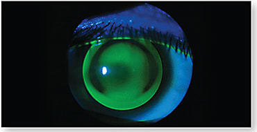 If the residual astigmatism is not adequately corrected with a spherical GP lens, consider a bitoric or a front-surface-toric corneal GP. Because the cornea has both regular and irregular astigmatism, lens rotation might not be adequately stabilized. We tend to prescribe the amount of base curve toricity by interpreting the amount of toricity observed in the fluorescein pattern and not by the amount of corneal toricity measured by manual or sim K readings.
